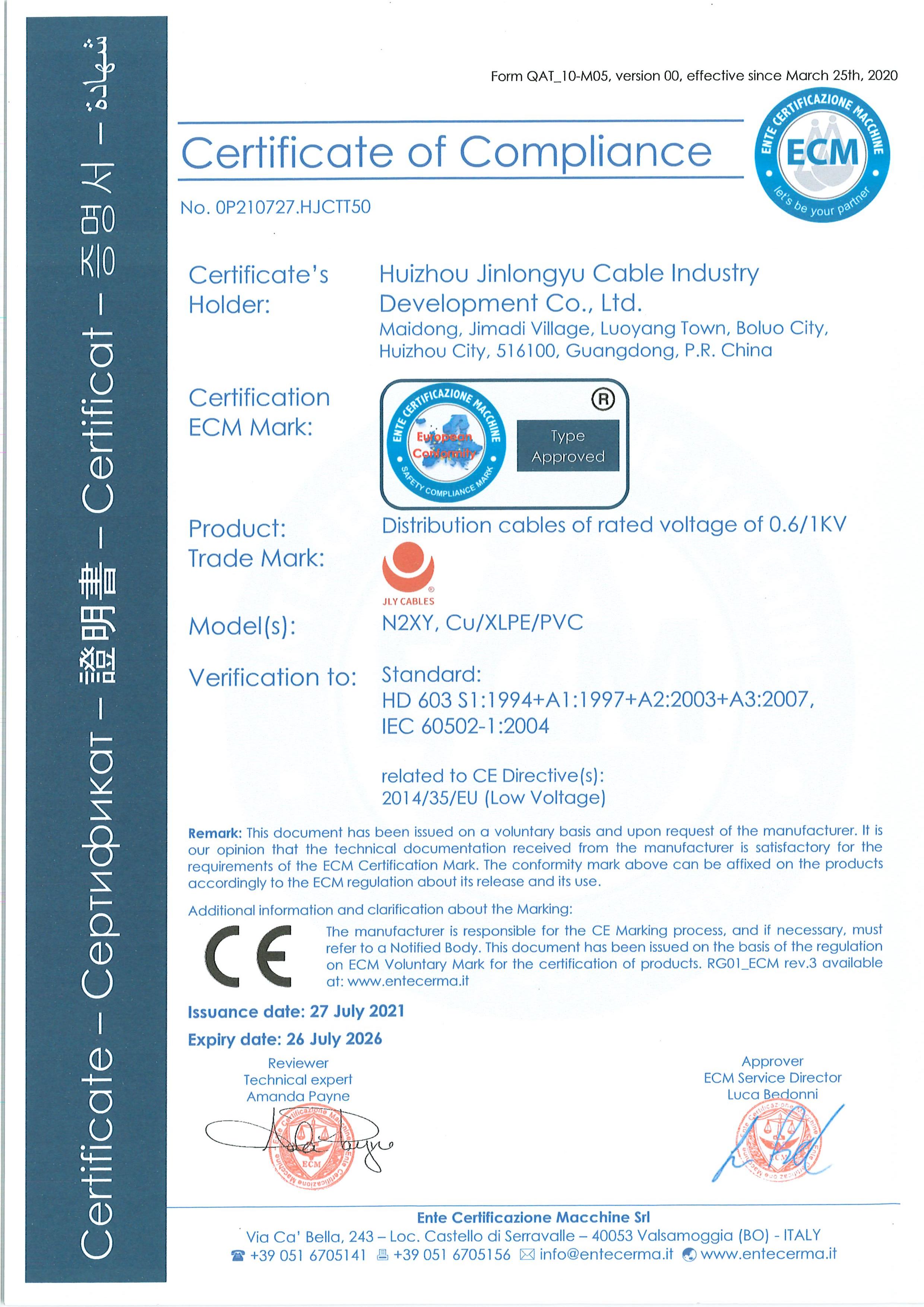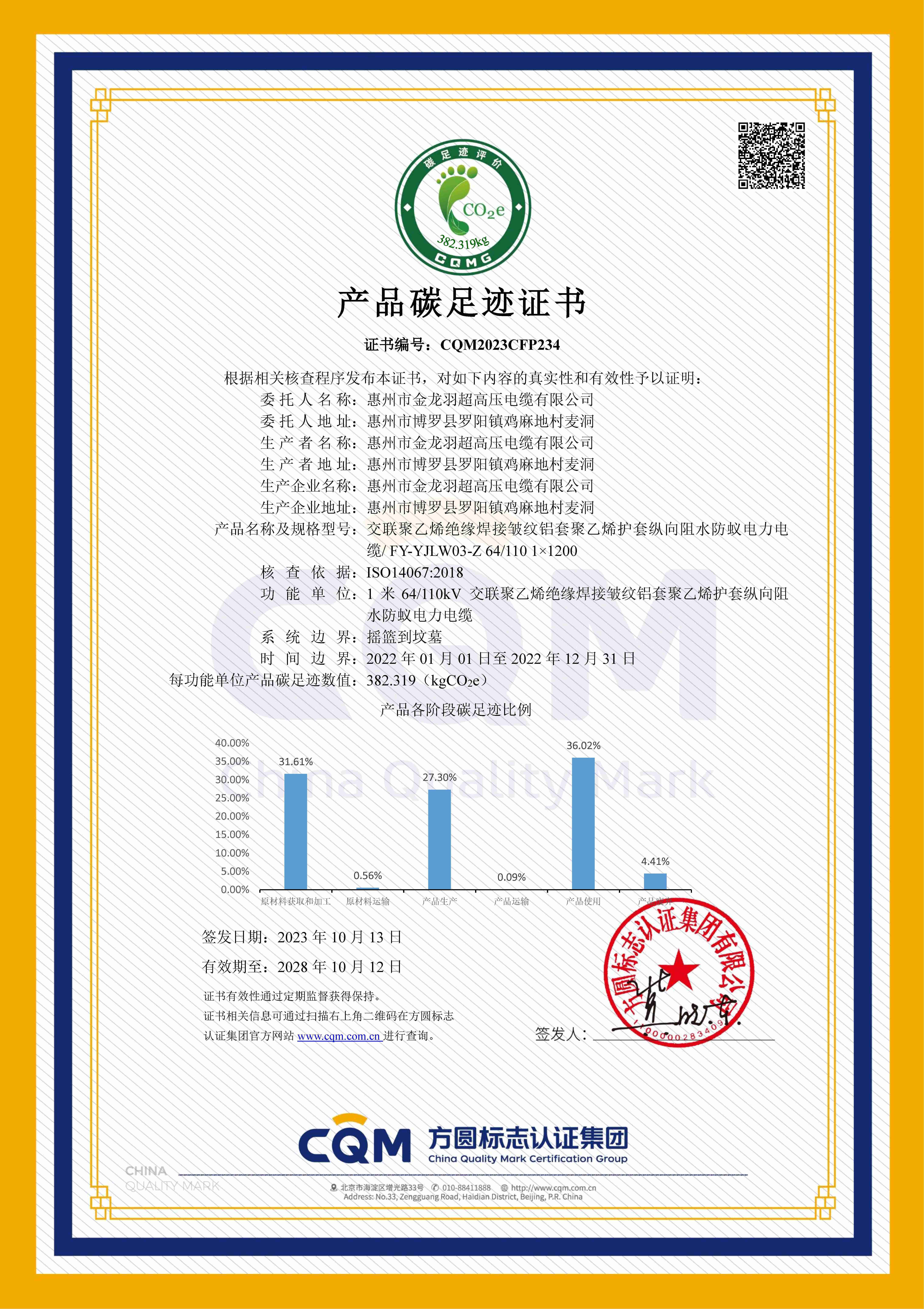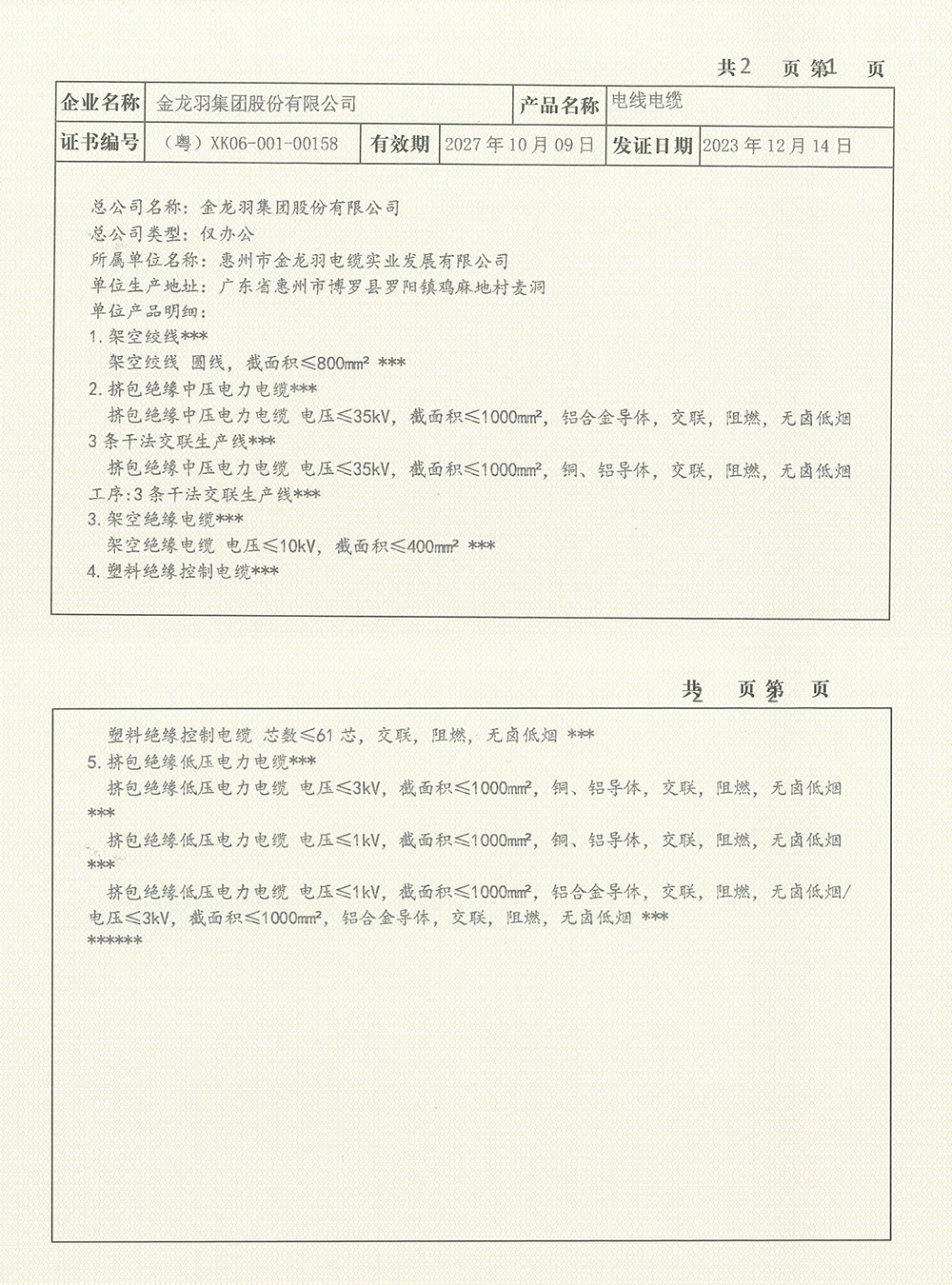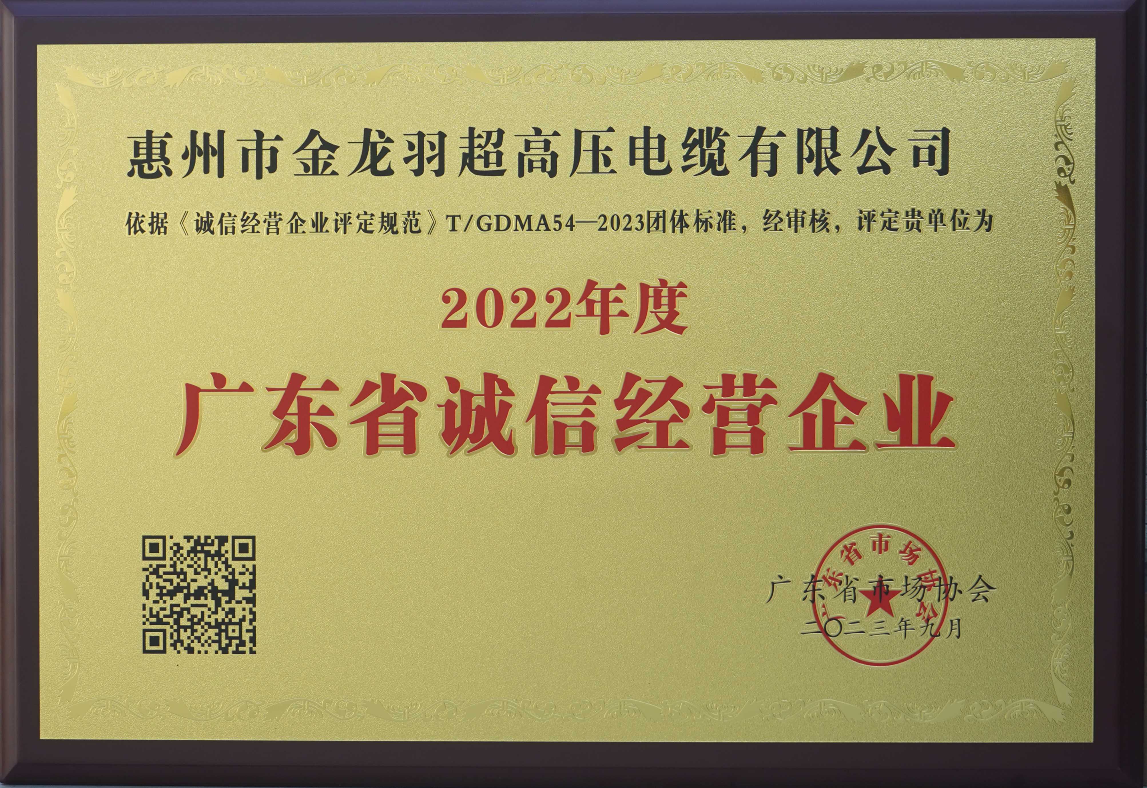2022年度廣東省誠(chéng)信經(jīng)營(yíng)企業(yè)-惠州市金龍羽超高壓電纜有限公司