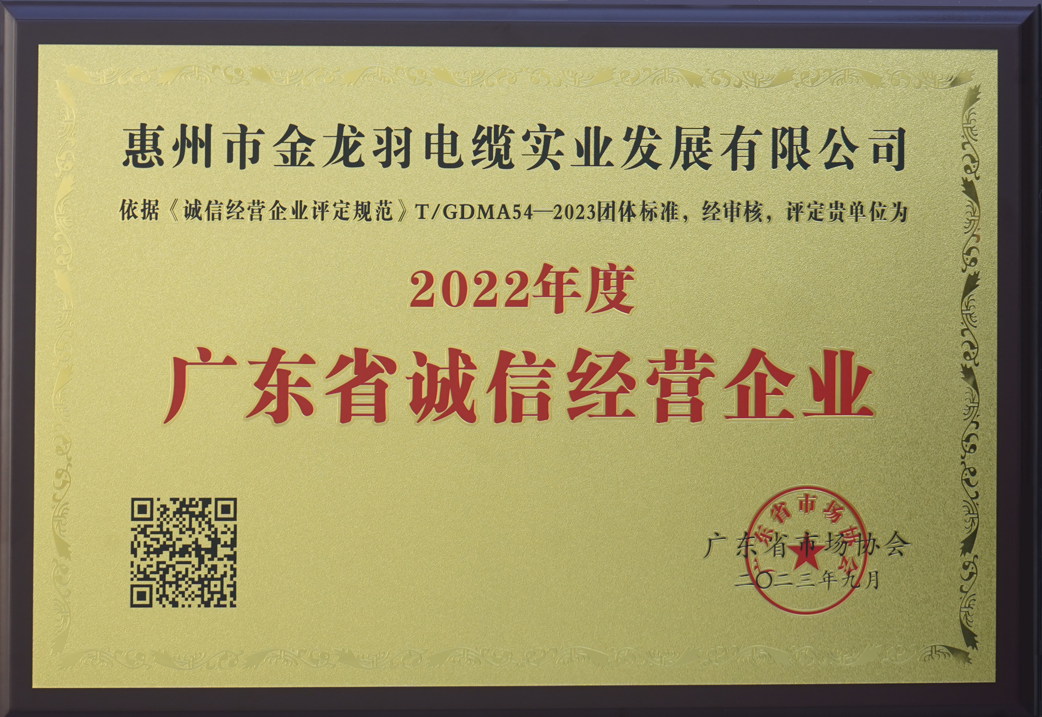 2022年度廣東省誠(chéng)信經(jīng)營(yíng)企業(yè)-惠州市金龍羽電纜實(shí)業(yè)發(fā)展有限公司