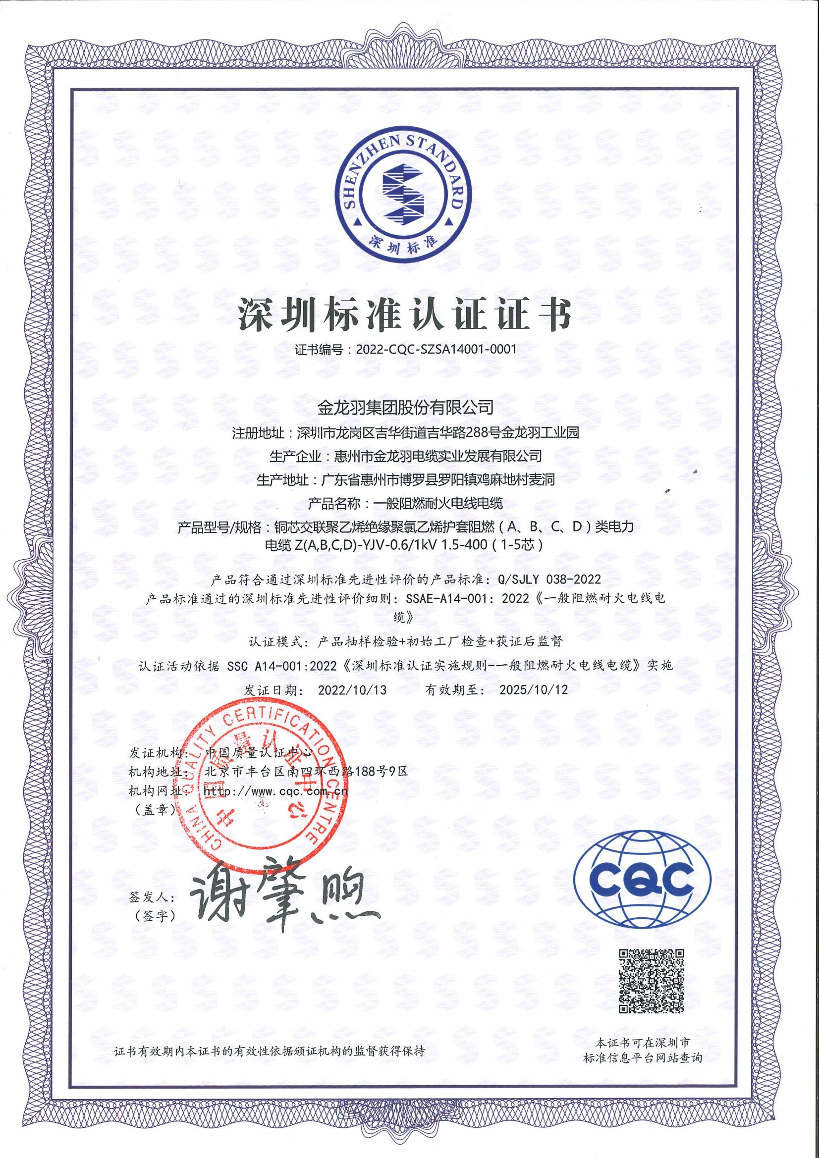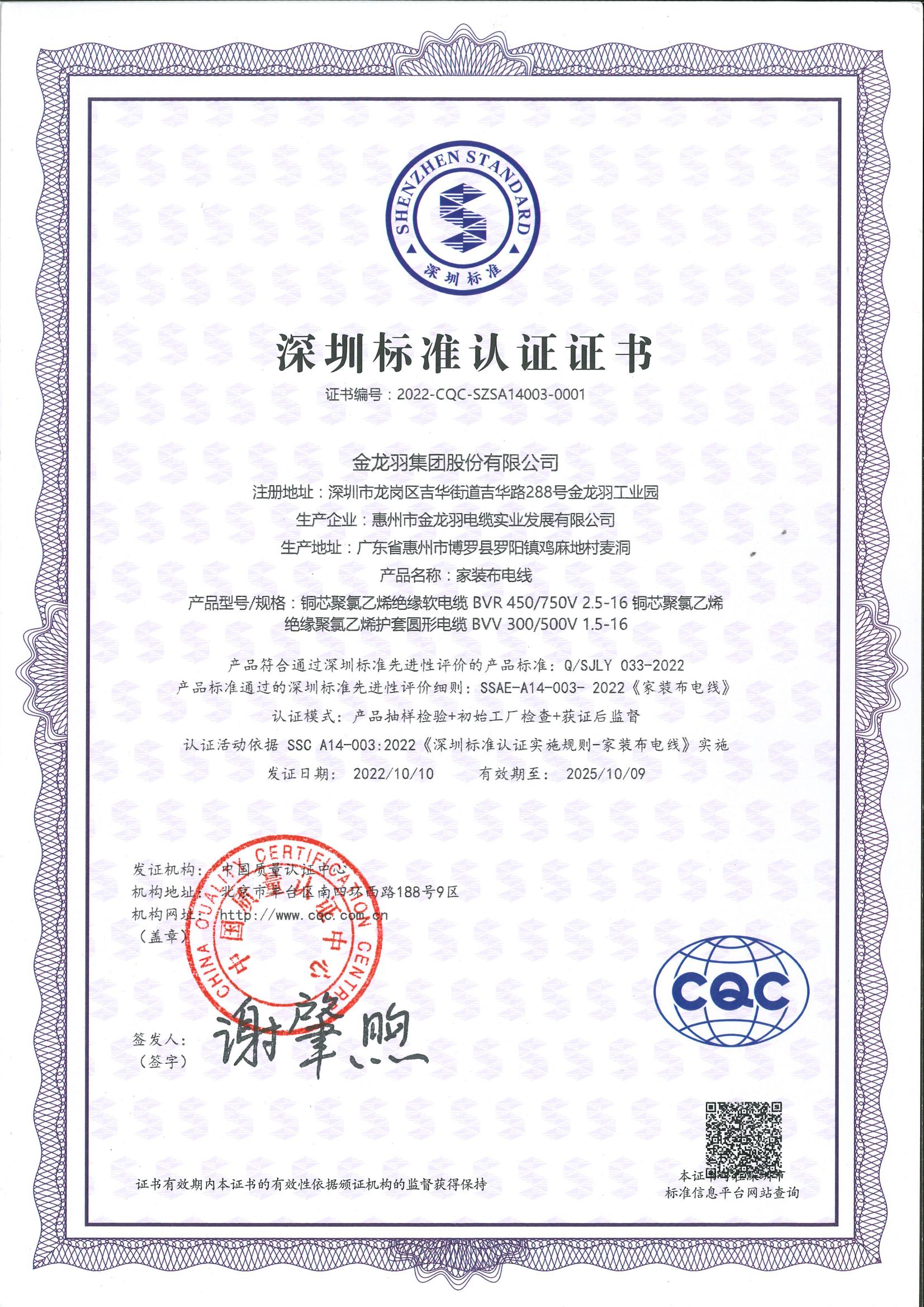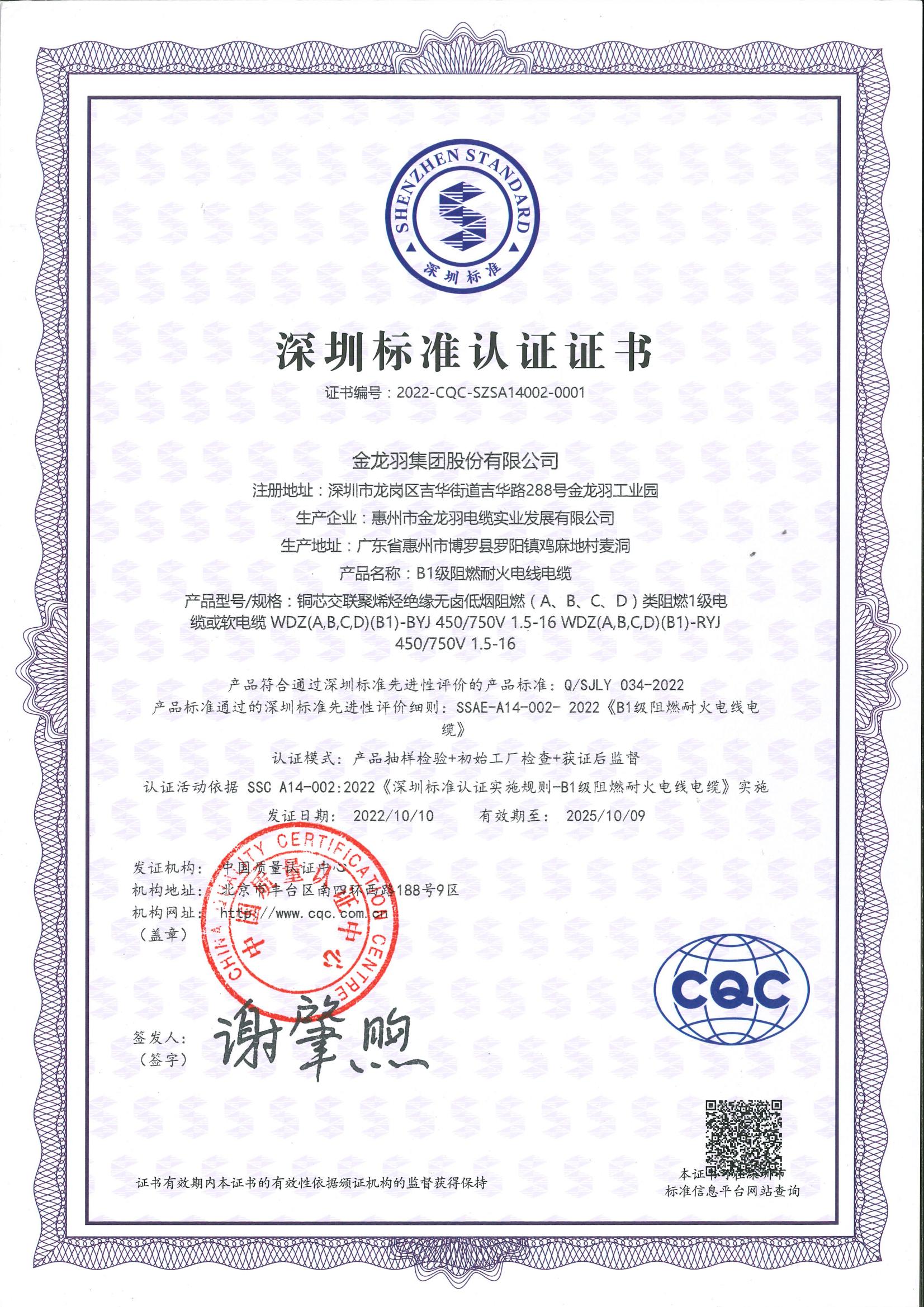 惠州市金龍羽電纜實業發展有限公司企業信用等級證書
