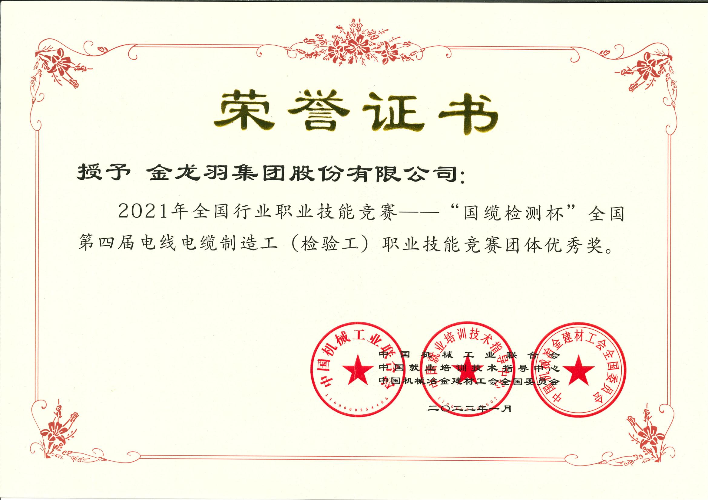 2021年全國行業職業技能競賽”國纜檢測杯“競賽團體優秀獎