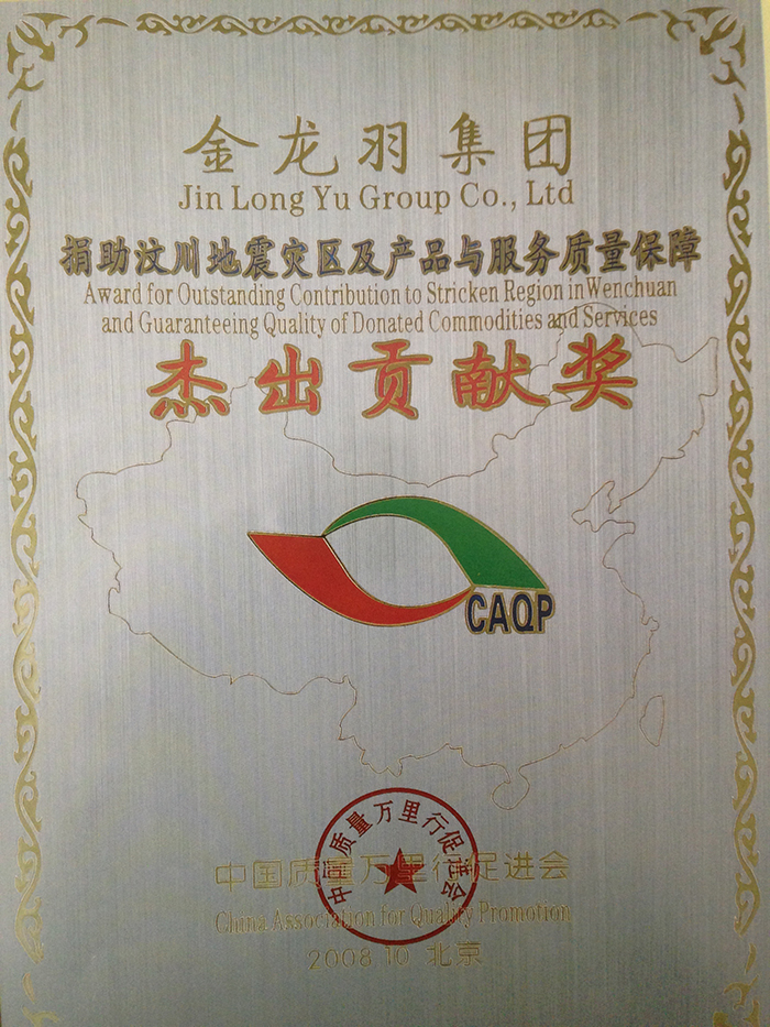 捐助汶川地震災(zāi)區(qū)及產(chǎn)品與服務(wù)質(zhì)量保障杰出貢獻(xiàn)獎(jiǎng)